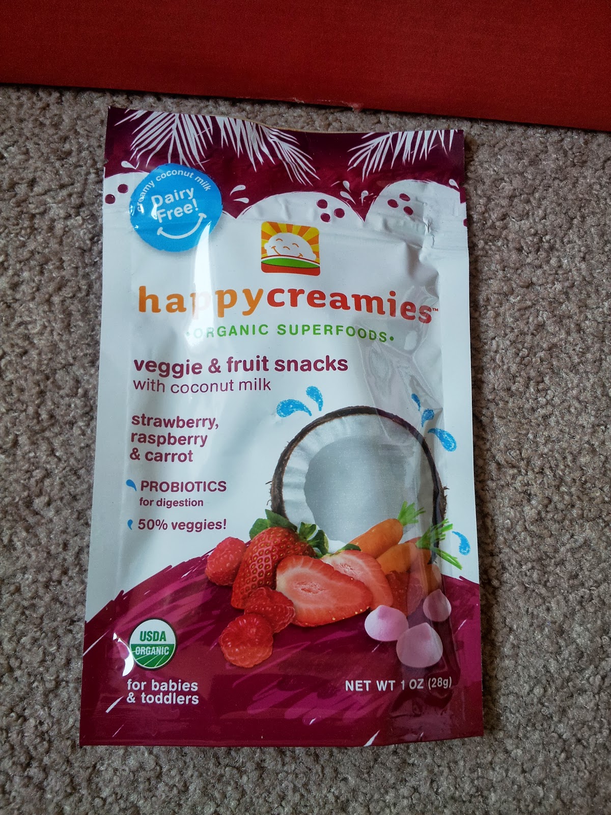 We also got another package of Happy Family food. This time it was the Happy Family Creamies veggie and fruit snacks with coconut milk. We got the strawberry, raspberry and carrot flavor. These creamies are a great way for your little one to eat their veggies without realizing it. Mommy gives them to me and I don’t mind because they taste so good, and although it says coconut milk on the package, it is totally dairy free and of course USDA Organic.
