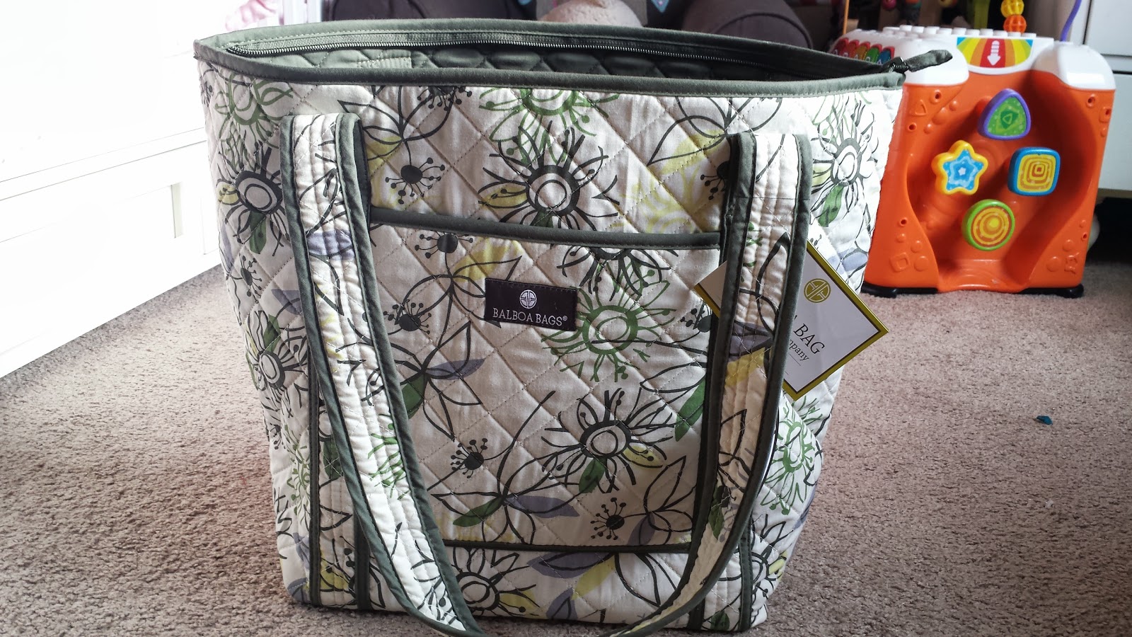 When Balboa Baby asked if I would do a review and host a giveaway for their Tote bag of course I was not going to say no. Did I mention how much I love their product? For those not familiar with Balboa Baby, they have everything that you will need for your little one’s needs from birth to toddlerhood. I’m talking about adjustable slings, nursing covers, nursing pillows, high chair covers, shopping cart covers, stroller liners, car seat canopies, bibs and of course baby bags.