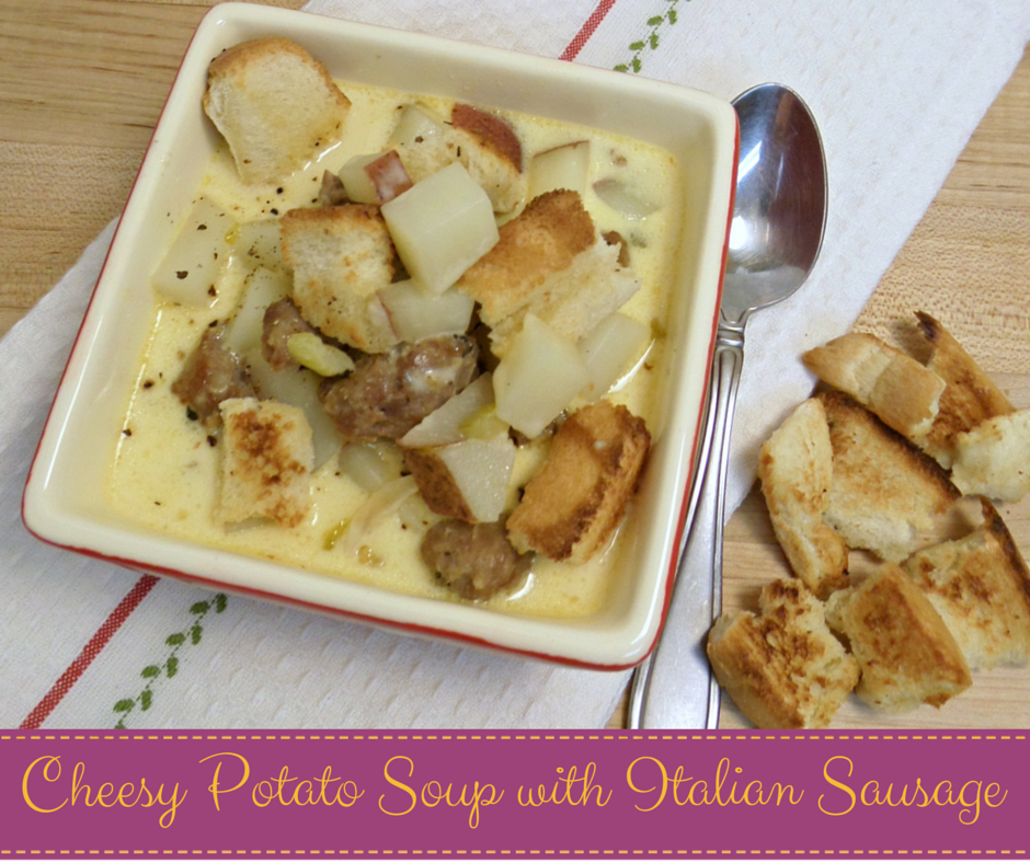 Since the weather turned cooler I have been thinking more about serving soup as a meal a lot more frequently. We have our favorites but sometimes it’s nice to put a twist on an old recipe by adding new and unexpected ingredients like this Cheesy Potato Soup with Italian Sausage instead of the traditional ham or bacon. I think that this just might be my new favorite potato soup! You can also make it yours as well.