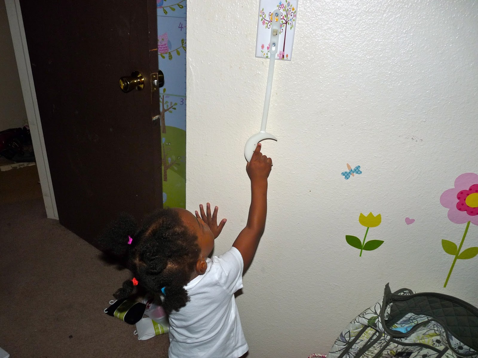 I’m a very energetic toddler. Yes, I like to climb onto, over and into things. It’s not safe for me to do but I do it anyway. One of the things I like playing with was my light switch in my room. I would usually pull a toy and stand on it and flip it on and off. Once again it wasn’t safe but I did it anyway.