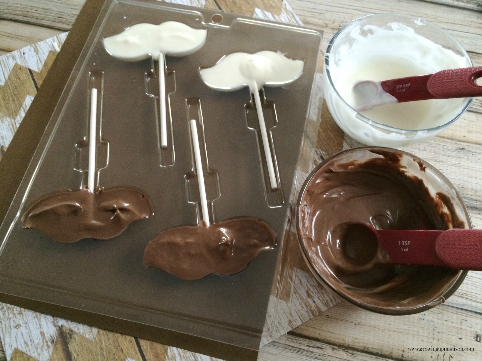 Now place your sticks in the stick slot of the mold, making sure they are pushed all the way to the top of the mustache.