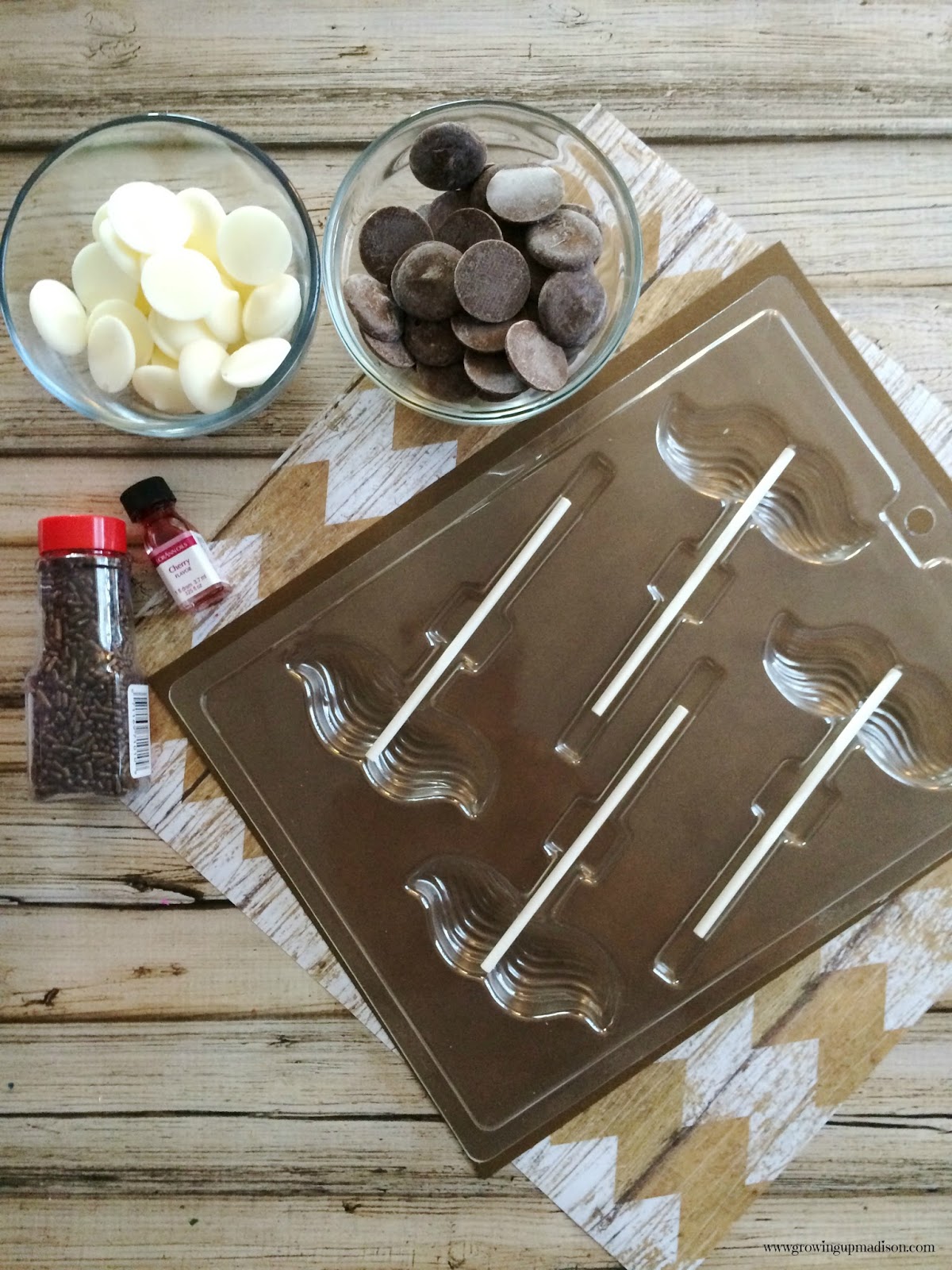 Place a pinch of the brown sprinkles in a couple of the mustache molds.