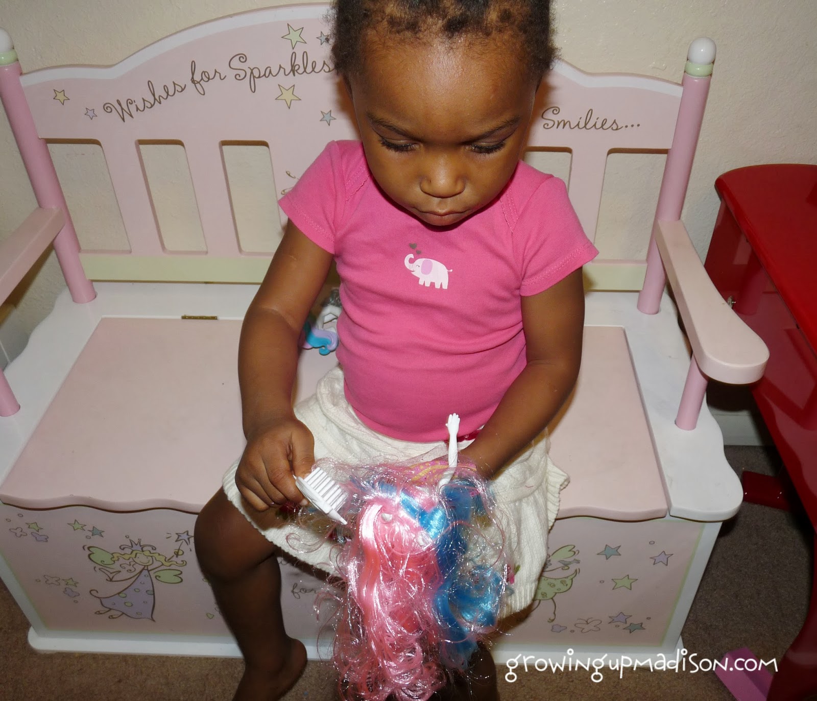 Now I really love my doll but mommy limits my playtime with her since she does have small parts. I still love putting everything in my mouth and I mean everything! Even her hair has made it into my mouth. I wanted to taste it! If you have little ones like me you may want to keep a close eye on them as well. Celestia does have quite a few other friends and you can collect them all. The My Little Pony Equestria Girls gets my Two Tiny Thumbs Up!