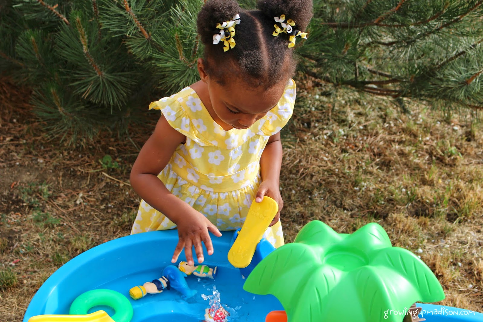 One day while browsing Walmart, mommy and I just happened upon the Step2 Tropical Island Resort. My eyes lit up and I wanted it then and there. I hope your mommy isn’t like mine. Mine decided to take out her smartphone and do a price comparison on Amazon right there in the middle of the aisle. Well it turned out it was cheaper on Amazon and according to mommy there was no tax involved and free shipping. That also meant that I was going to have to wait an extra 2 days before I could even play. Well it got to my house pretty quickly and every morning I get up I’m outdoors playing away.